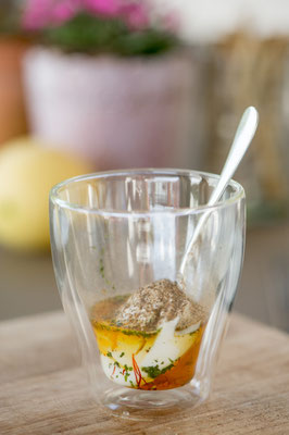 1. Safran zerkleinern und im Wasser 1h einweichen.